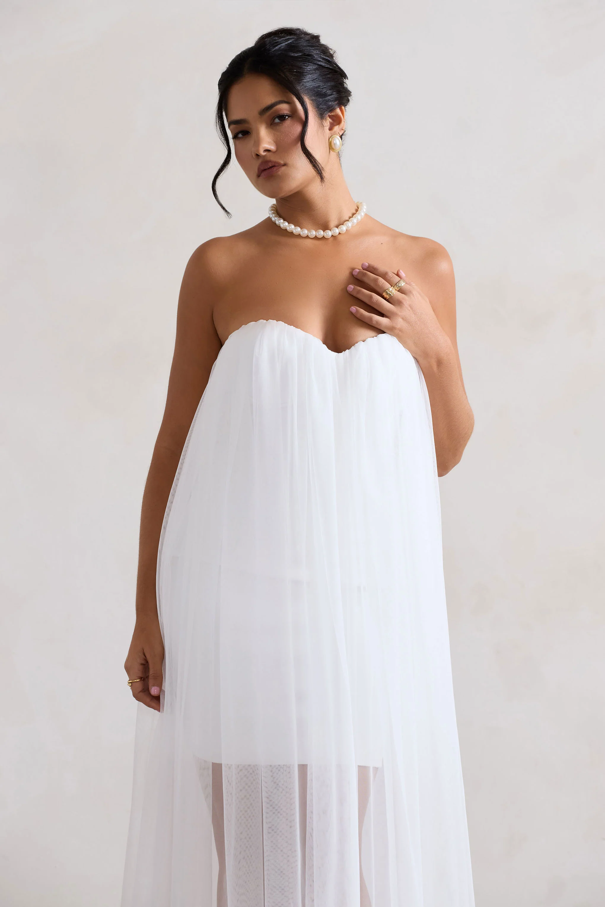 Optez pour une élégance éthérée avec Dreamland, notre robe courte fluide. Confectionnée dans une nuance ivoire éclatante de notre crêpe premium, cette pièce bustier se distingue par un décolleté cœur intemporel et une superposition de tulle fluide. Laissez Dreamland faire sensation lors de votre prochain événement en l'associant à un chignon décoiffé simple et des stilettos à brides.