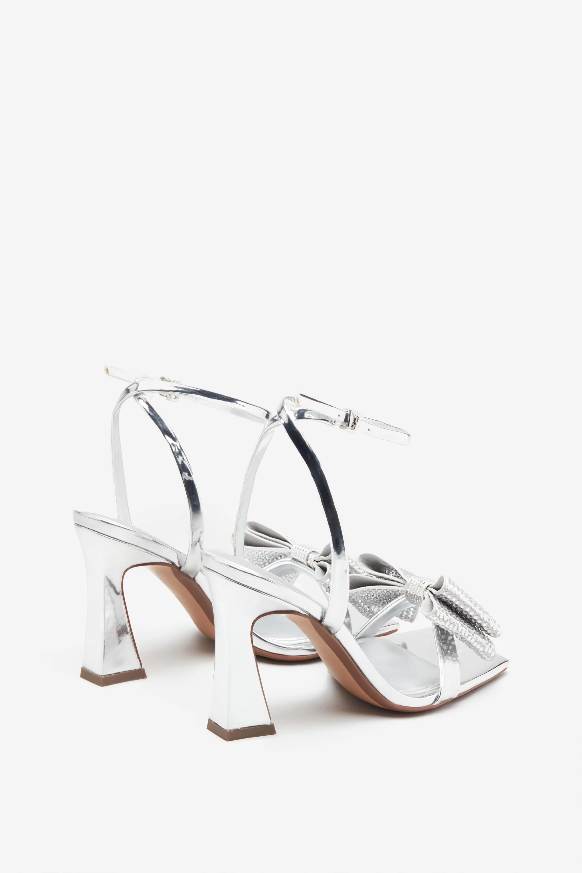 Headlines | Sandales argentées à talons avec boucle à la cheville et nœuds en strass