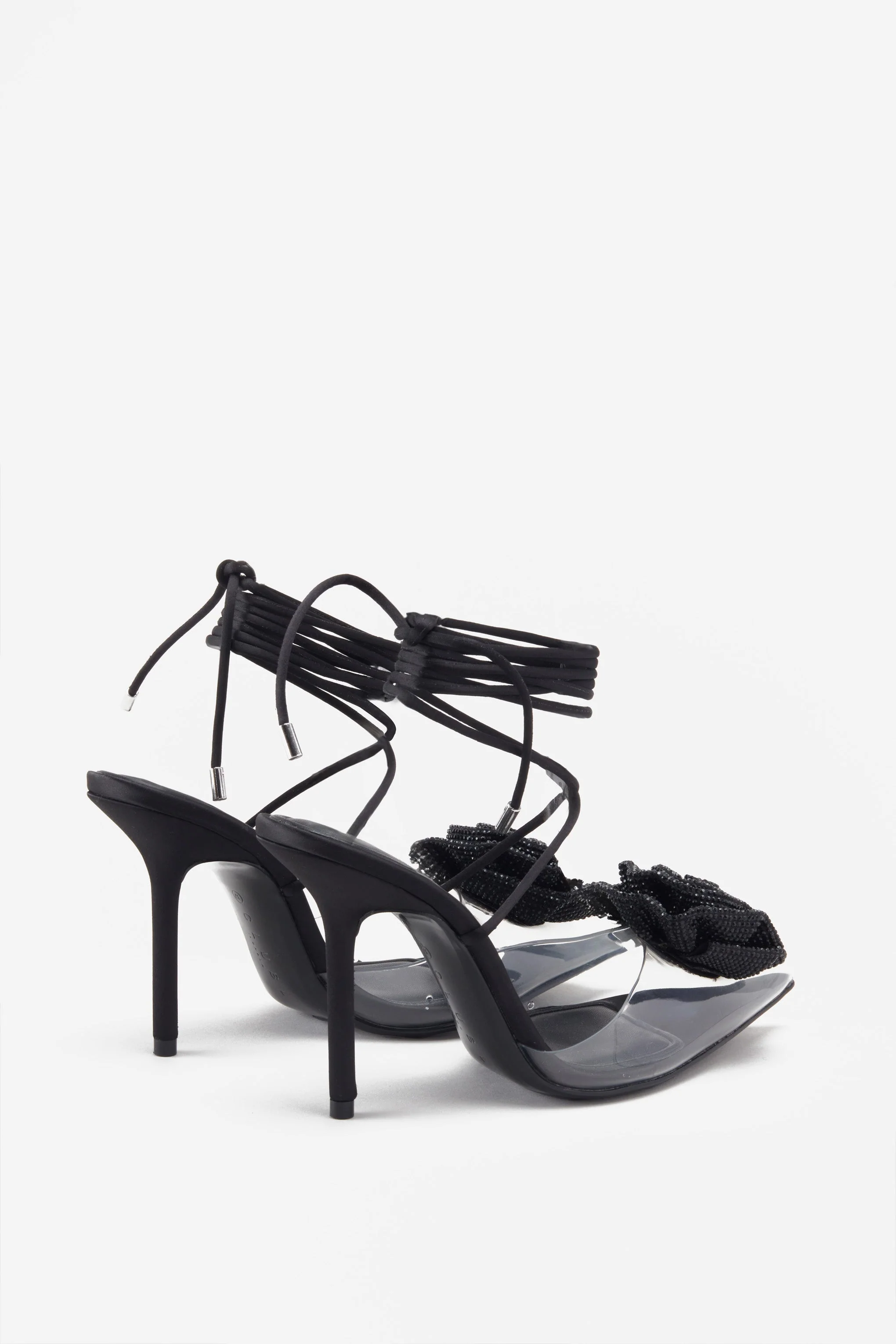 Sharpened | Talons aiguilles noirs à lanière et fleur diamantée